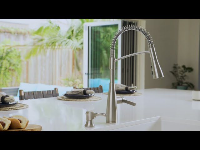 If you’re a foodie, an aspiring chef, or someone who appreciates sleek and modern style, we created the Kwan™ kitchen collection for you. Kwan™ culinary kitchen faucets have a high arc and exposed spring style, making them ergonomic and easy on the eyes. Switch between Spray, Stream, and Pause mode with the push of a button, and let AccuDock™ docking technology secure the spray head when you’re finished. No matter what you’re dishing up or cleaning up, your stylish sous chef has got you covered.